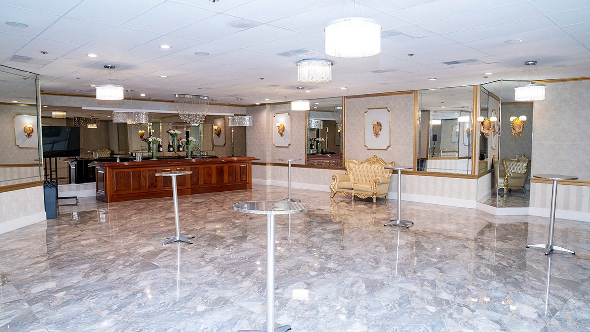 The perfect space for your intimate special event or grand cocktail party reception. The giant mirror backed bar is the focal point for a gathering of special friends and family.